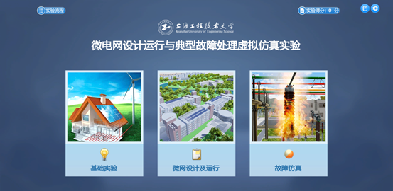 本虚拟仿真软件项目共设计了“基础实验”、“微网设计及运行”和“故障仿真”三个教学模块。实验整体采用由浅入深的方式:通过对光伏、风机和储能的基本实验操作,让学生了解光伏、风机和储能的基本原理和运行特性;在此基础上开展微电网的设计、运行及能量管理,包括微电网容量配置、策略制定、能量管理和参数设计;最后让学生身临其境,置身微电网场景中进行故障分析和处理。通过上述实验内容的实施,使学生对微电网规划设计、能量管理及运行控制方法与典型故障有更深入的理解和认识。